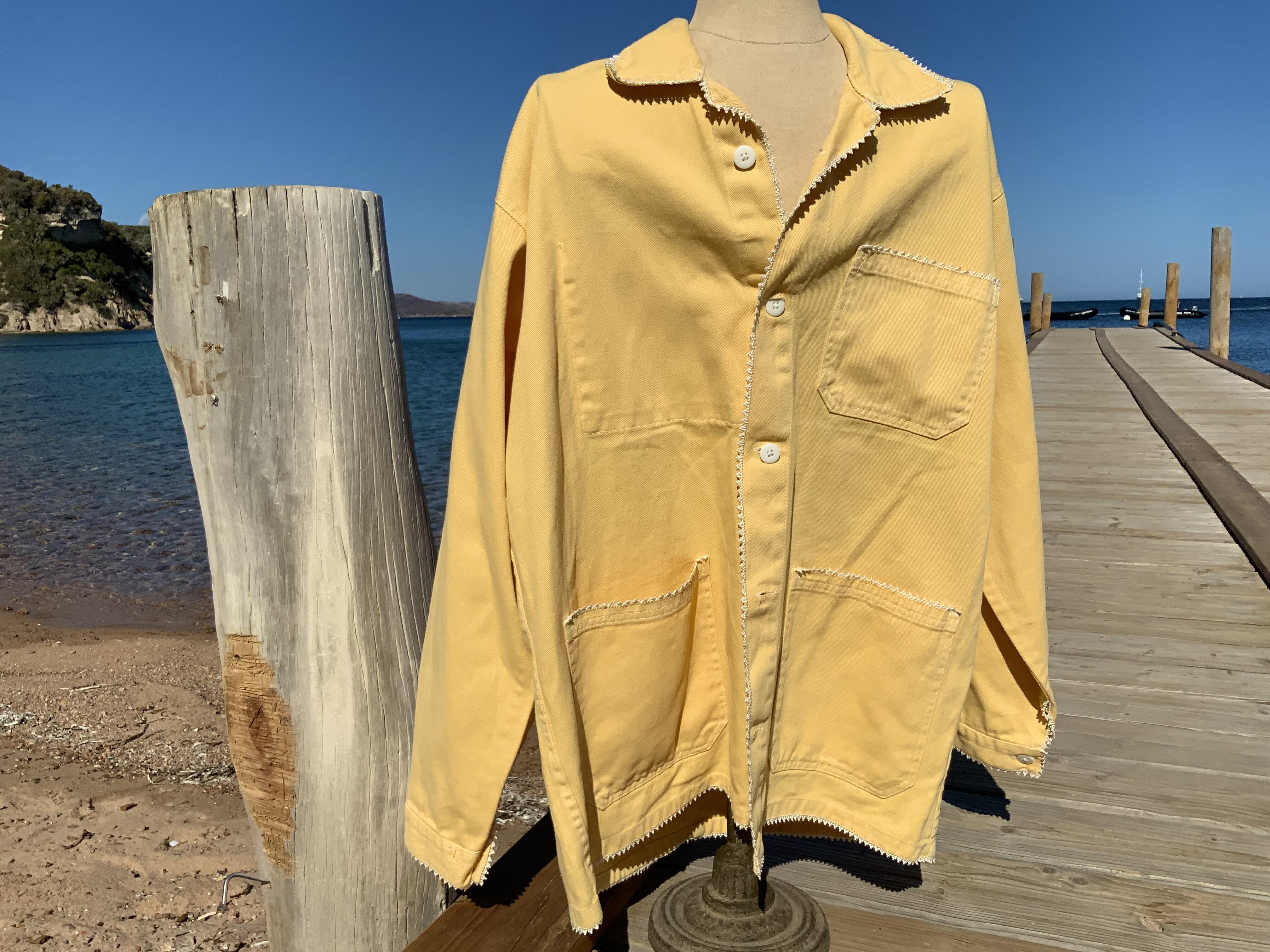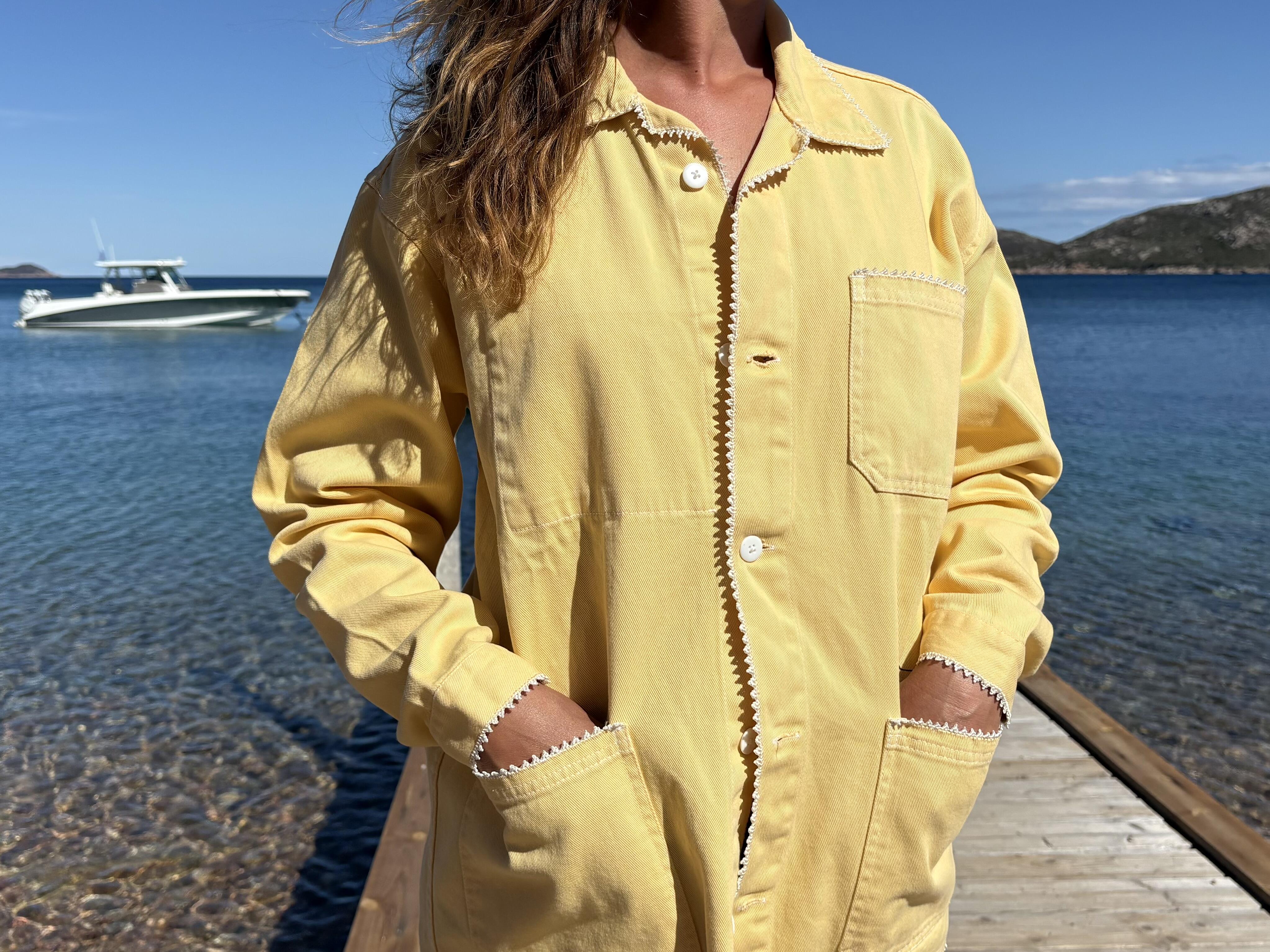 This cotton jacket, practical for everyday wear, is embellished with unique, handcrafted crochet details, adding character and soul.