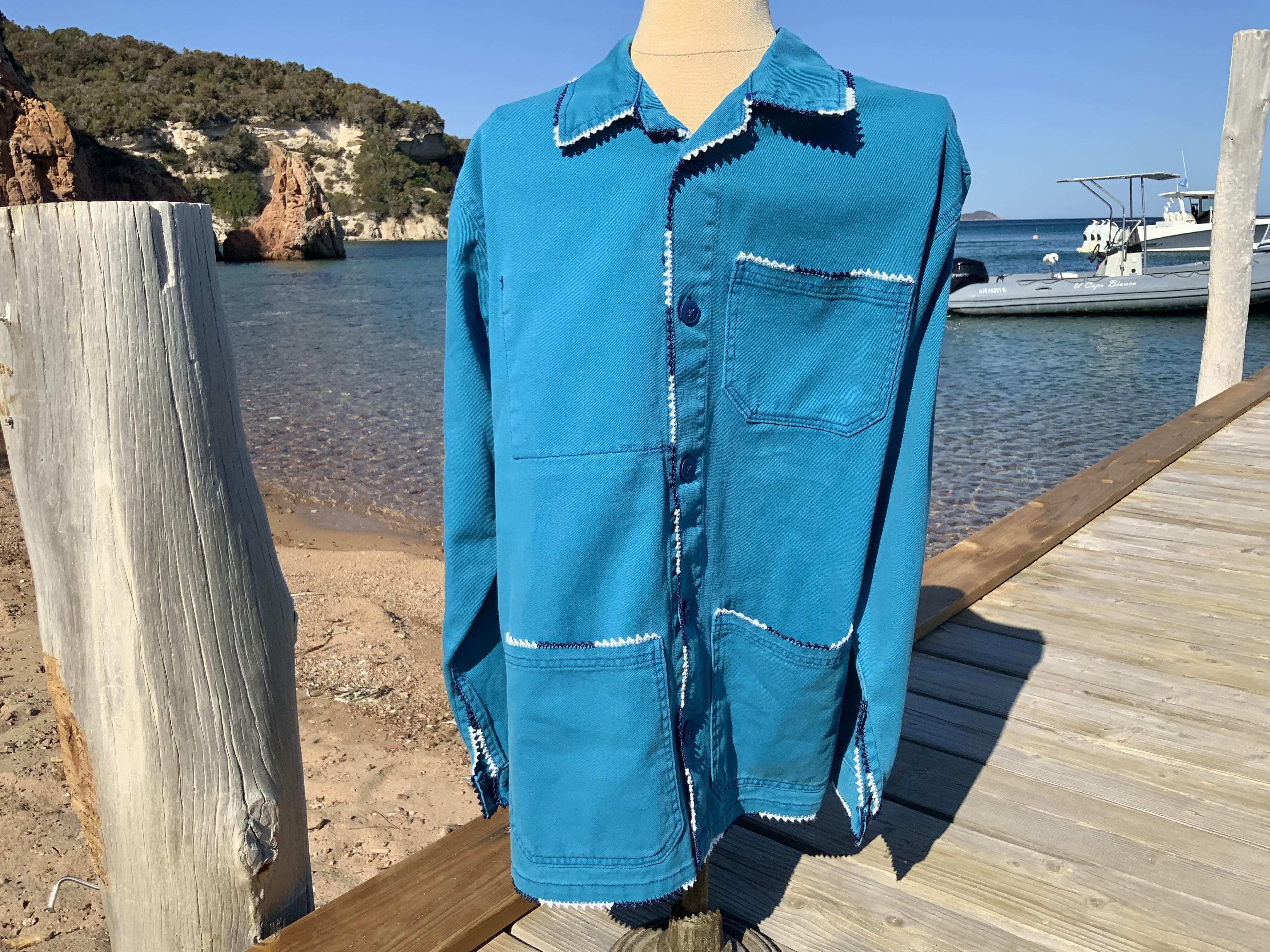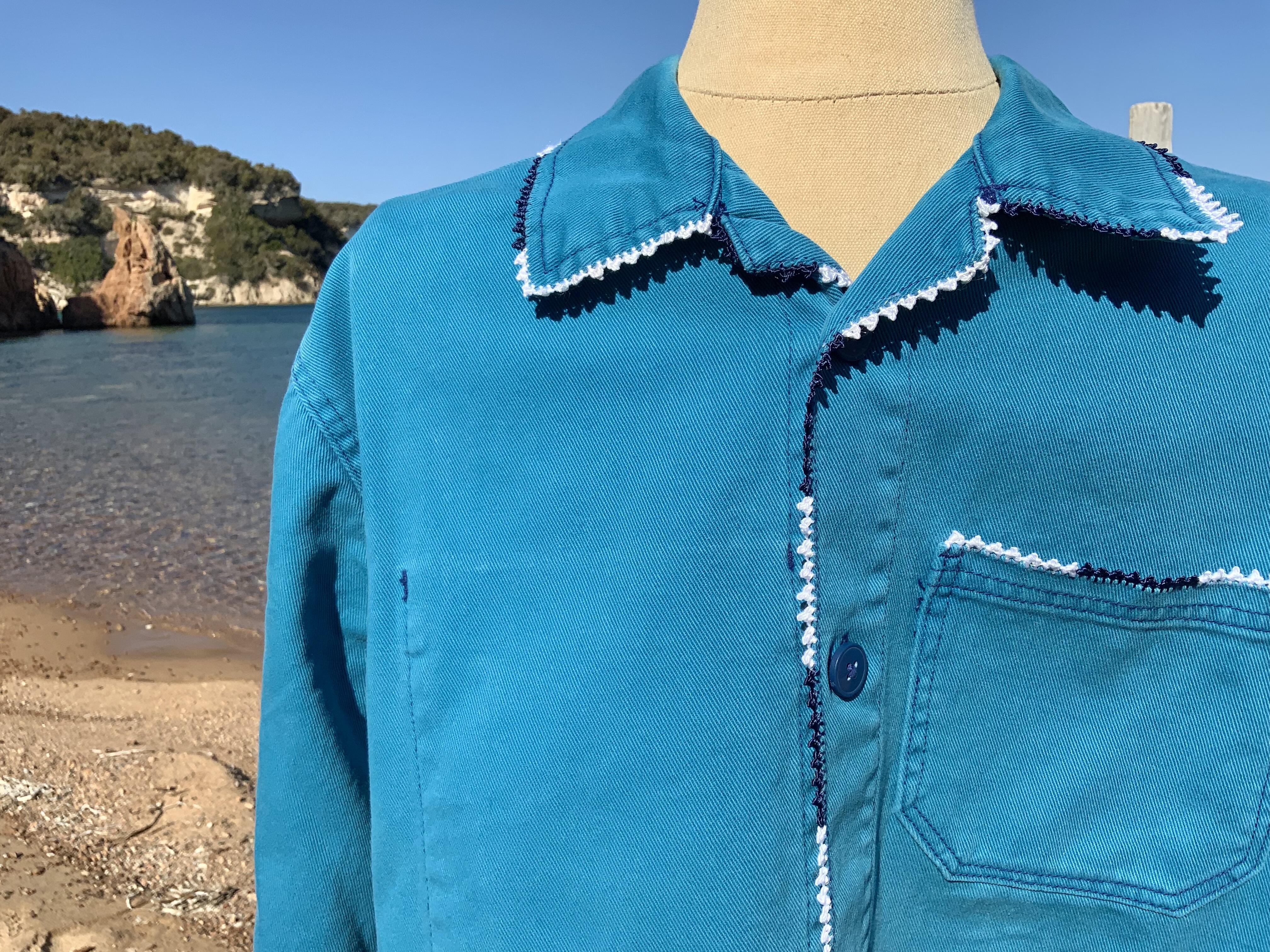 This cotton jacket, practical for everyday wear, is embellished with unique, handcrafted crochet details, adding character and soul.