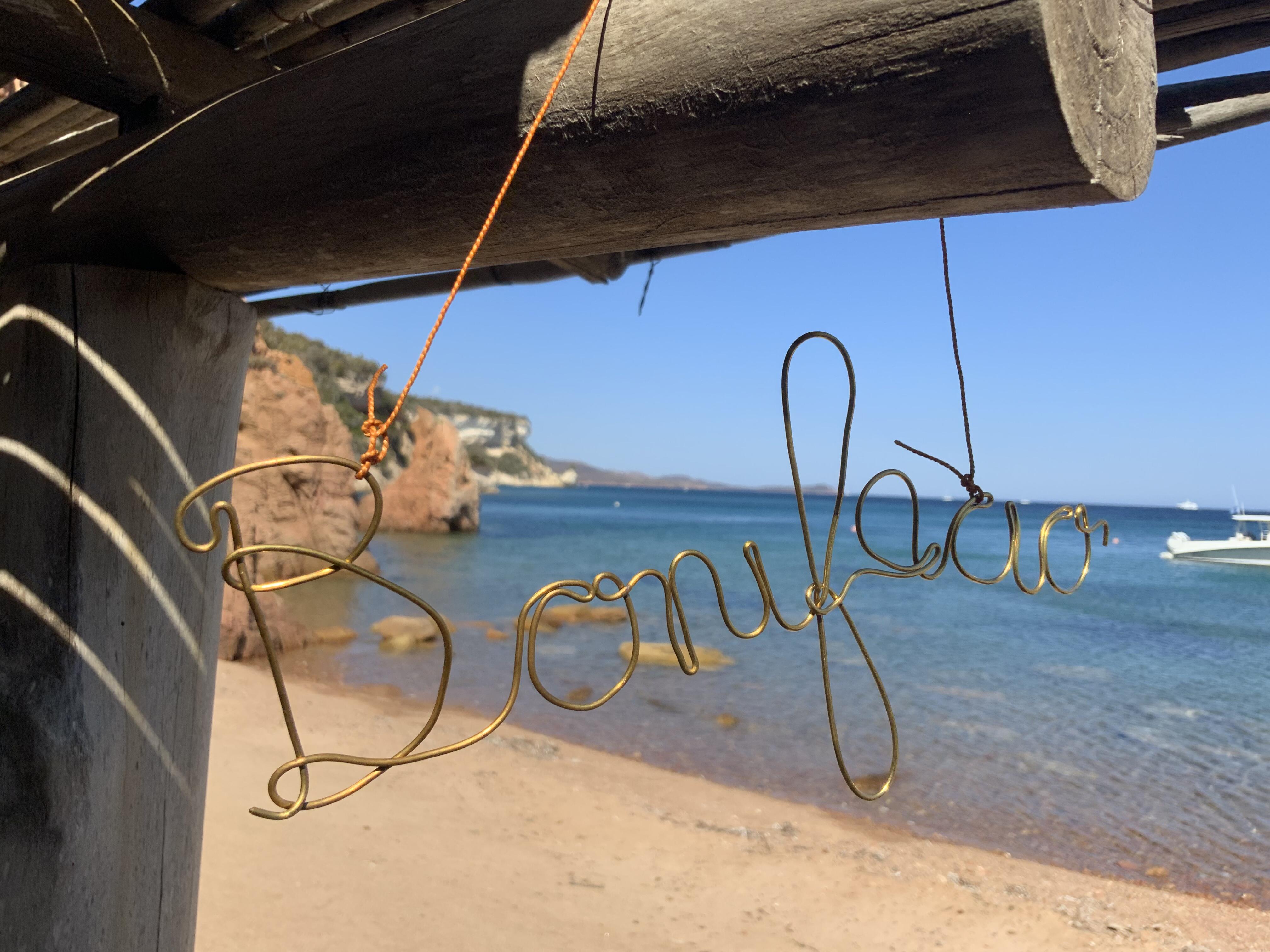 Ce mot décoratif en laiton doré, délicatement façonné, invite à faire entrer la magie de Bonifacio chez vous.